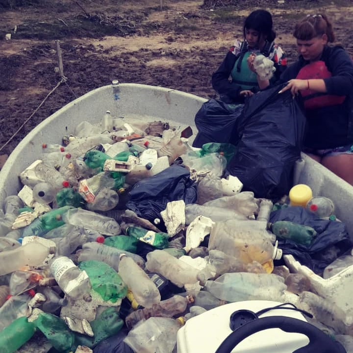 Un grupo de voluntarios utiliza sus embarcaciones para limpiar la costa del Paraná. Lo que más recolectan son botellas de plástico, que demoran cientos de años para degradarse.