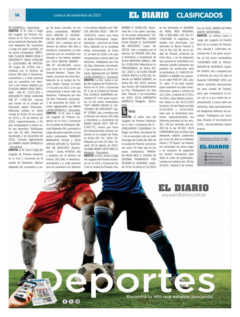 El Diario de Entre Ríos. Todos los derechos resevados. Prohibida su reproducción total o parcial.