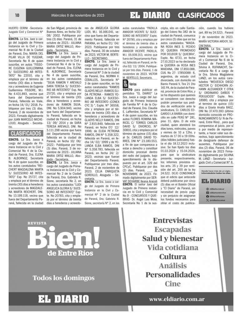 El Diario de Entre Ríos. Todos los derechos resevados. Prohibida su reproducción total o parcial.