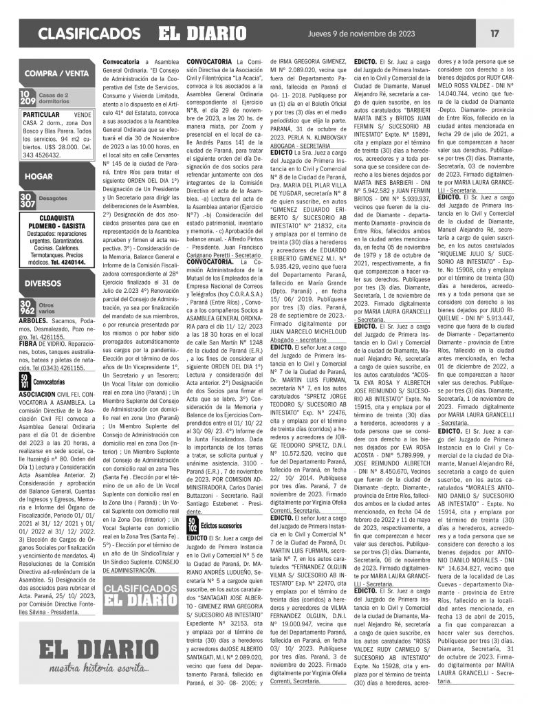 Clasificados 09.11.23