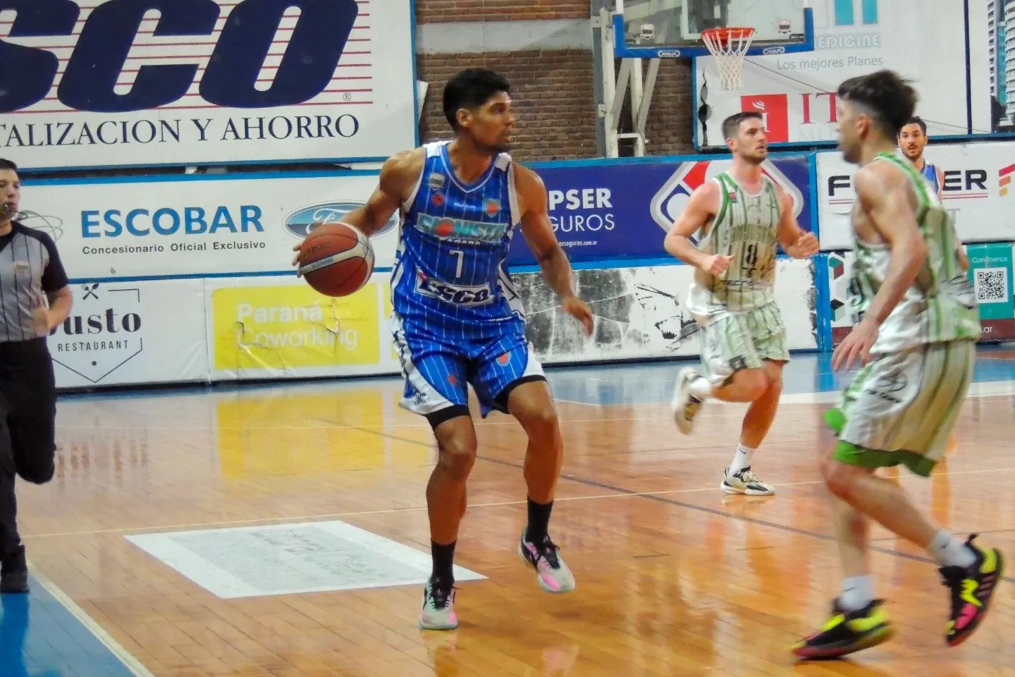 Después de un primer cuarto parejo, el dueño de casa sacó la primera ventaja importante con un registro de 16 a 10  (31 – 23 el primer tiempo para el “Verde”). En el arranque del complemento metió un parcial de 26 a 20 para escaparse 57 a 43 y quedar así a cara del triunfo. Esta llave también sigue el jueves en Santa Fe.