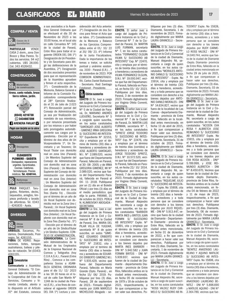 Clasificados 10.11.23