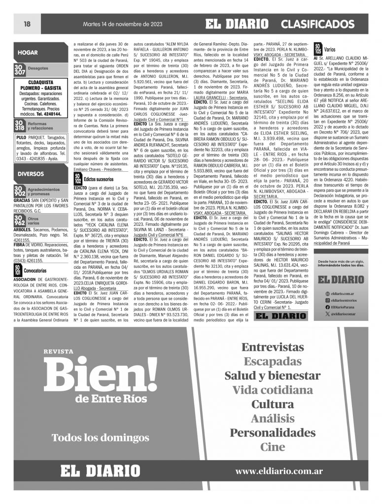El Diario de Entre Ríos. Todos los derechos resevados. Prohibida su reproducción total o parcial.