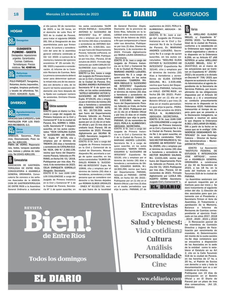 El Diario de Entre Ríos. Todos los derechos resevados. Prohibida su reproducción total o parcial.
