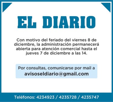 Con motivo del feriado del viernes 8 de diciembre, la administración permanecerá abierta para atención comercial hasta las 14 horas de hoy jueves 7 de diciembre.
