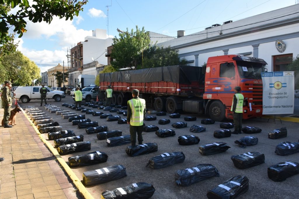 Integrantes de la Sección Seguridad Vial “Ceibas” dependiente del Escuadrón 56 “Gualeguaychú” realizaban controles vehiculares sobre la Ruta Nacional N° 12, a la altura de la localidad de Villa Paranacito, cuando advirtieron que un camión con semirremolque que se encontraba estacionado en cercanías al control emanaba un fuerte olor, característico al de marihuana, por lo que procedieron a efectuar el registro físico y documentológico del rodado.