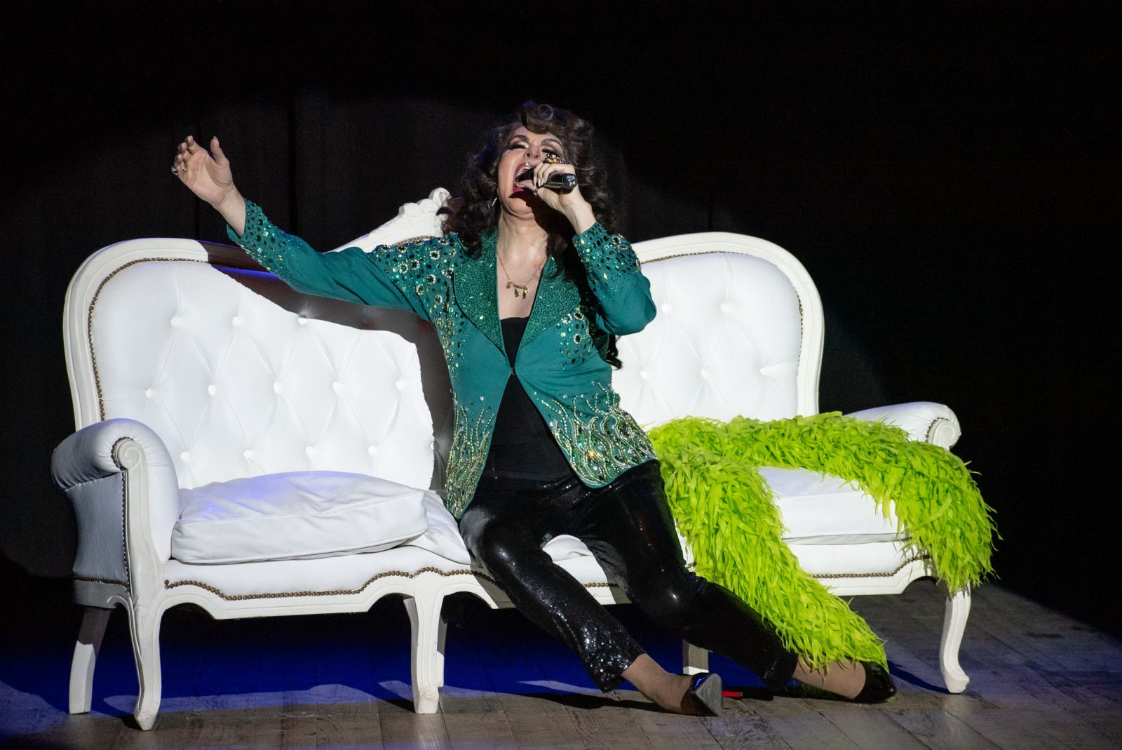 En sus shows, convoca a celebrar la vida en escena a través del humor, de canciones, monólogos.