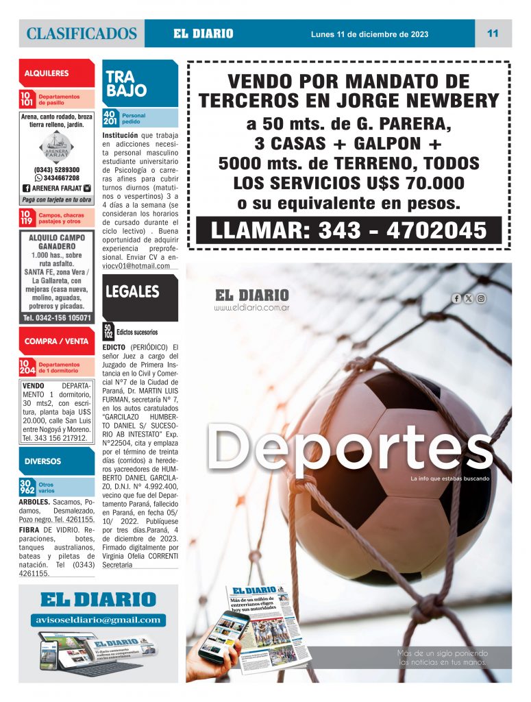 El Diario de Entre Ríos. Todos los derechos resevados. Prohibida su reproducción total o parcial.