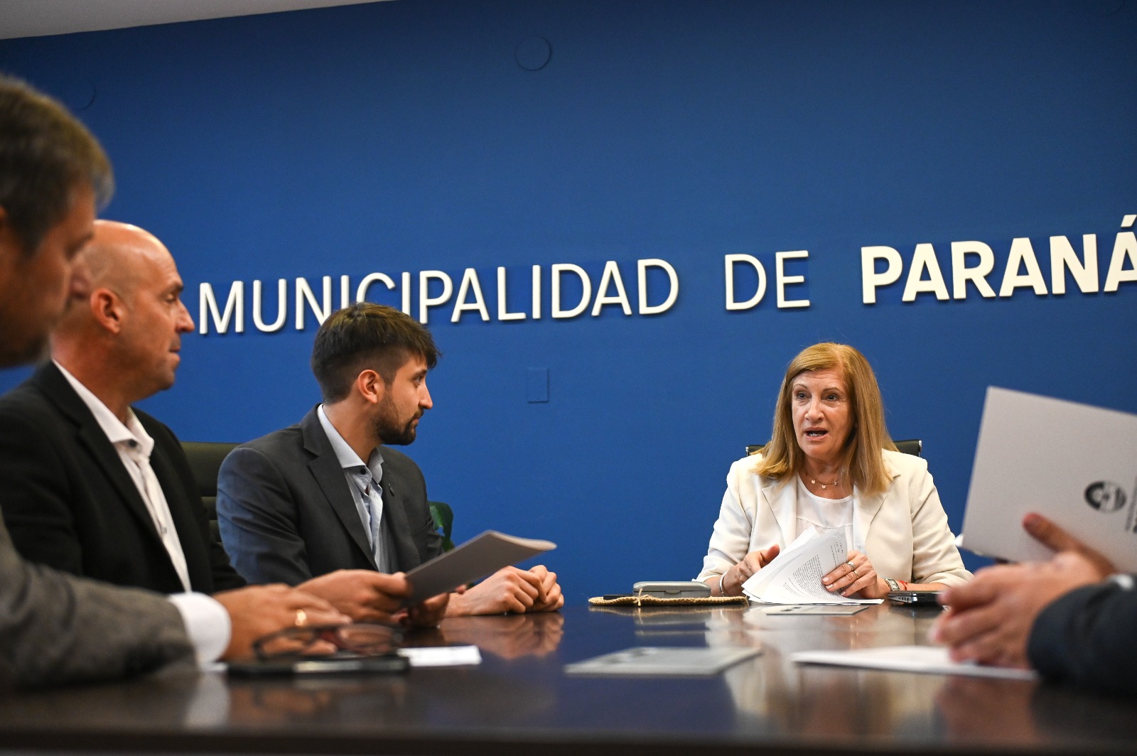 La intendenta de Paraná, Rosario Romero, recibió este jueves a presidentes municipales de San Benito, Colonia Avellaneda, Oro Verde y Sauce Montrull. El objetivo del encuentro fue planificar acciones en materia de transporte, residuos, salud y deporte, entre otros temas.