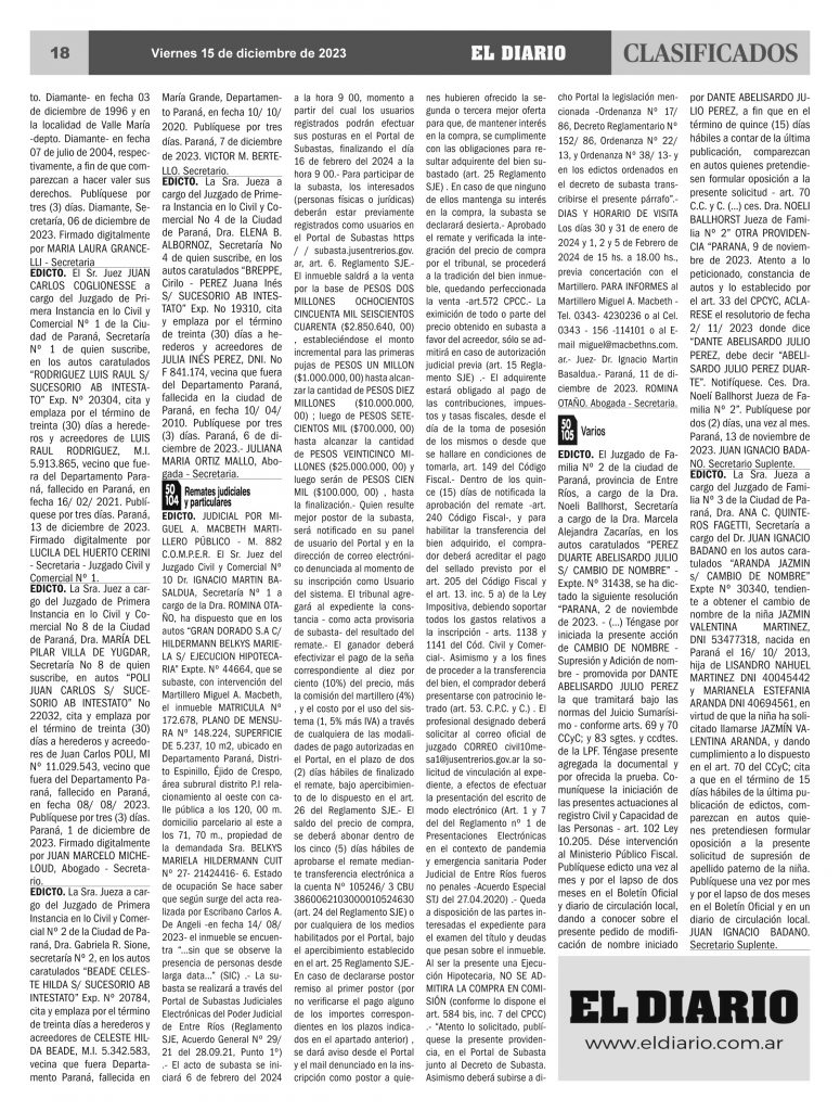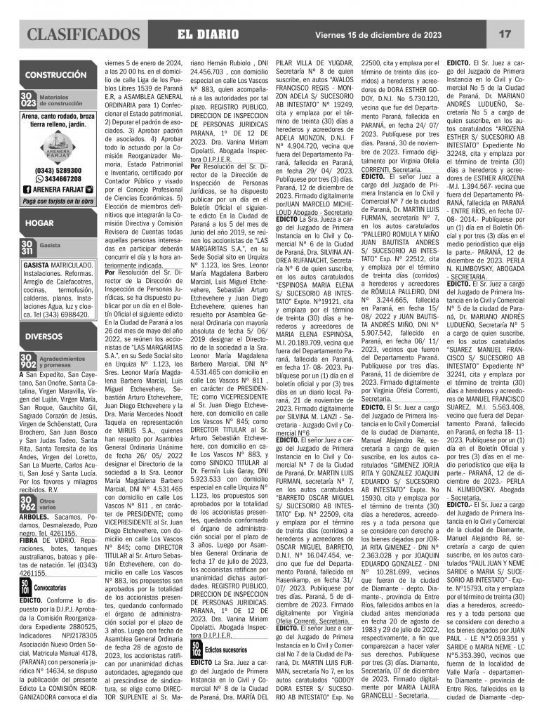 Clasificados 15.12.23