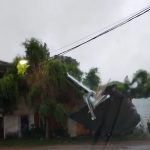 La ciudad fue afectada por vientos intensos de más de 140 km/h y precipitaciones, lo que produjo la voladura de techos, caída de árboles y postes, como así la interrupción del suministro eléctrico.