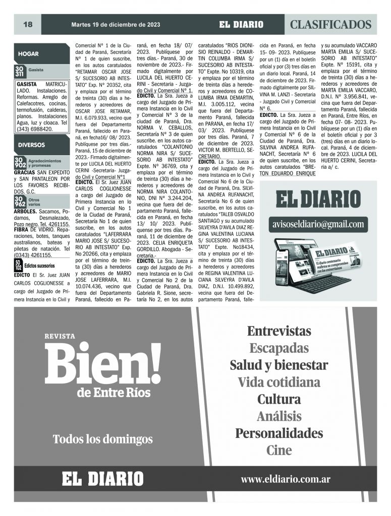El Diario de Entre Ríos. Todos los derechos resevados. Prohibida su reproducción total o parcial.