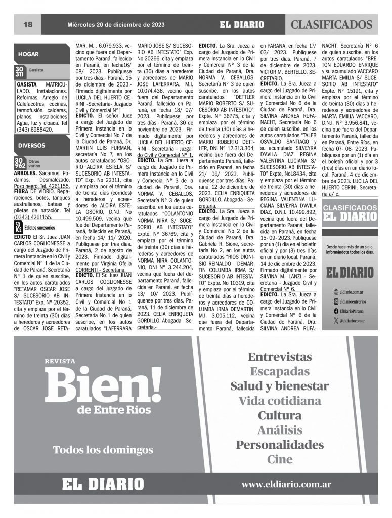 El Diario de Entre Ríos. Todos los derechos resevados. Prohibida su reproducción total o parcial.