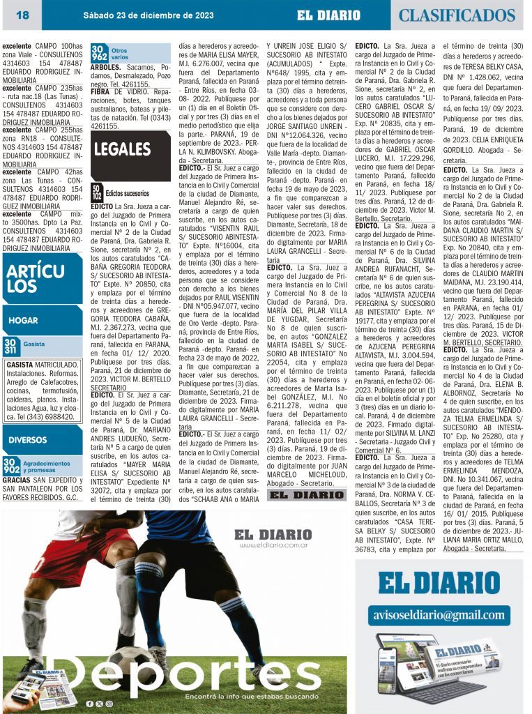 El Diario de Entre Ríos. Todos los derechos resevados. Prohibida su reproducción total o parcial.