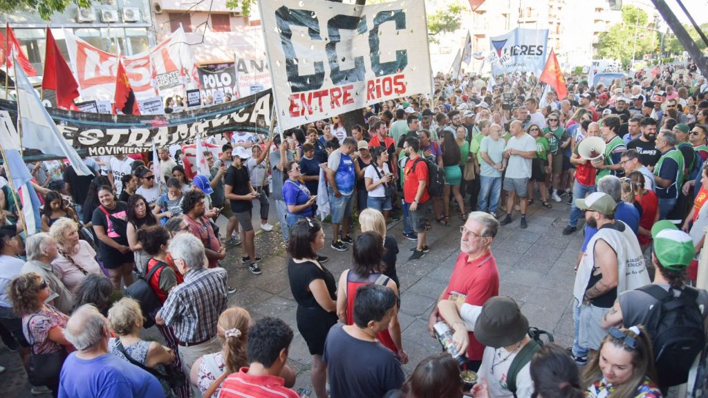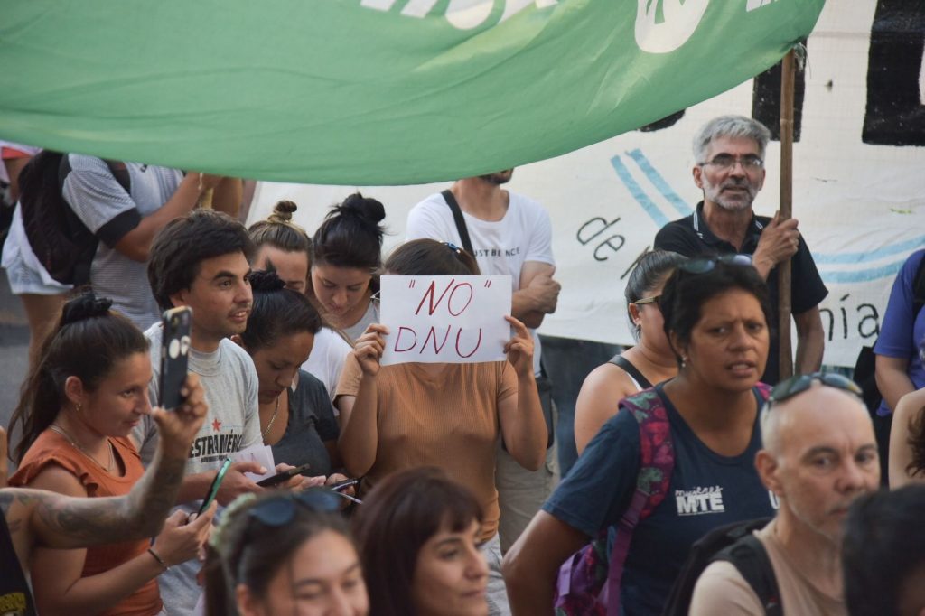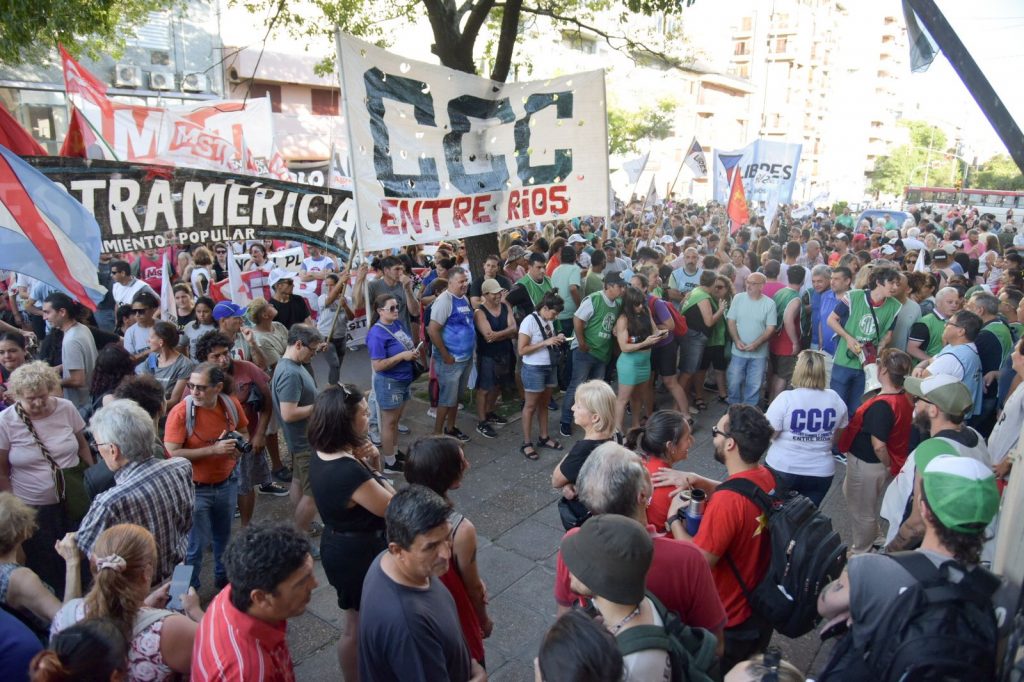 Las organizaciones sociales, sindicales, ambientales, feministas y de Derechos se concentraron en plaza 1º de Mayo, de Paraná, y marcharon hacia el Juzgado Federal, en rechazo a las medidas planteadas en el DNU de Javier Milei.