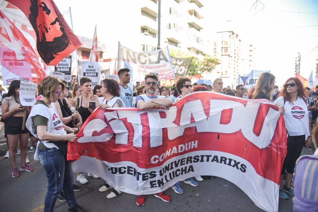 Además, Sofía Sforza, en representación de SITRADU, señaló: “Estamos sosteniendo la movilización que se hizo en todo el país, y el reclamo que atraviesa es el de paro general. Si bien nosotros creemos que es importante que la CGT y la CTA hayan convocado a esta movilización, la única forma de frenar este decreto es con un paro general. Los trabajadores ya han salido a la calle espontáneamente el 20 de diciembre a mostrar el rechazo al DNU de Milei”.