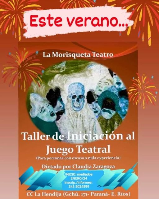 La Morisqueta Teatro, a cargo de Claudia Zaragoza, sigue inscribiendo al taller de INICIACIÓN AL JUEGO TEATRAL para jóvenes y adultos con escasa o nula experiencia que dará inicio a mediados del presente mes de enero en el Centro Cultural La Hendija (Gualeguaychú 171, Paraná) y tendrá continuidad en los meses de verano.
