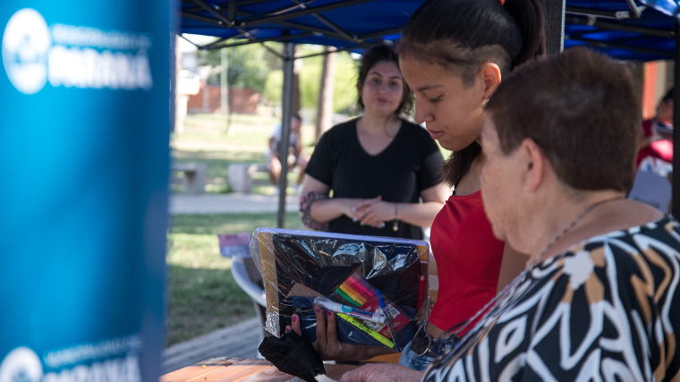 Este jueves, en la plaza Eva Perón del barrio San Agustín, los vecinos se acercaron para adquirir los kits de útiles escolares. El subsecretario de Producción, Leandro Rodríguez, explicó que la propuesta es uno de los instrumentos que “ponemos a disposición de los vecinos” para “fortalecer la actividad de los emprendedores y para acercarles a los paranaenses un producto económico en un contexto difícil”.