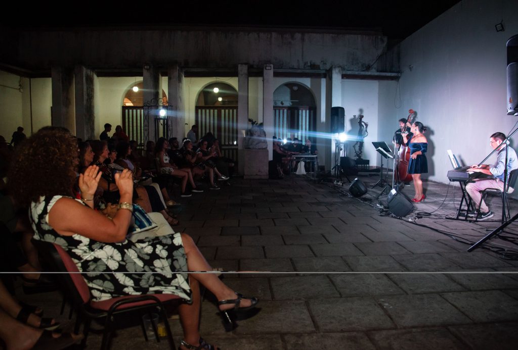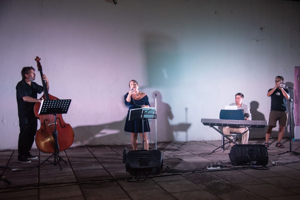 Bajo las estrellas, a metros del magnífico ejemplar de palo borracho que confiere su identidad al patio del Museo provincial de Bellas Artes, Jazz trío compartió su repertorio. La propuesta tuvo un eco resonante en el público, que venciendo el tórrido calor de la jornada se acercó para escuchar el repertorio que interpretaron Ana Contreras (voz), Joaquín Arijón (piano) y Martín Carrere (contrabajo). Con standards clásicos de jazz, momentos de bossa nova y folclore de distintas regiones de América, el encuentro posibilitó a los artistas exponer sus condiciones técnicas e interpretativas. El grupo, que comenzó en 2023 su recorrido musical, se afianza como un proyecto que conjuga la experiencia y trayectoria de sus integrantes sumando un nuevo aporte a la movida de jazz en la ciudad.