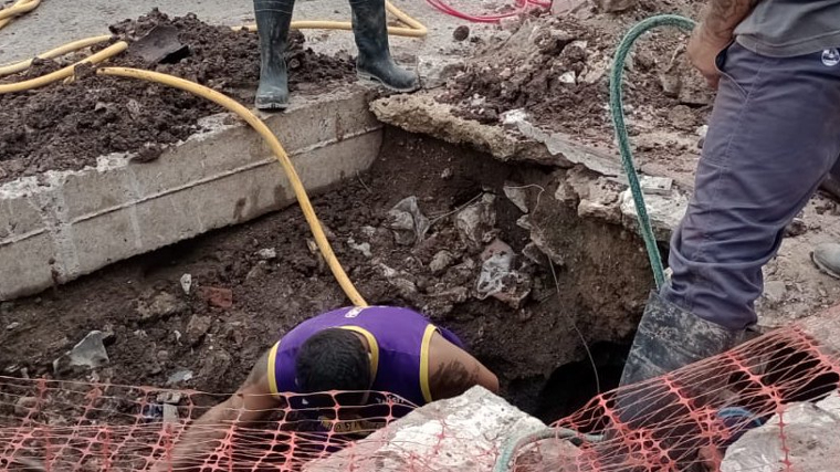 La intervención de Obras Sanitarias se encara en el marco de la obra de construcción de nuevos desagües pluviales, debido al socavón que se había producido en la avenida. Se trata de una nueva cañería de agua potable de 200 milímetros y la reconexión de una decena de servicios domiciliarios.