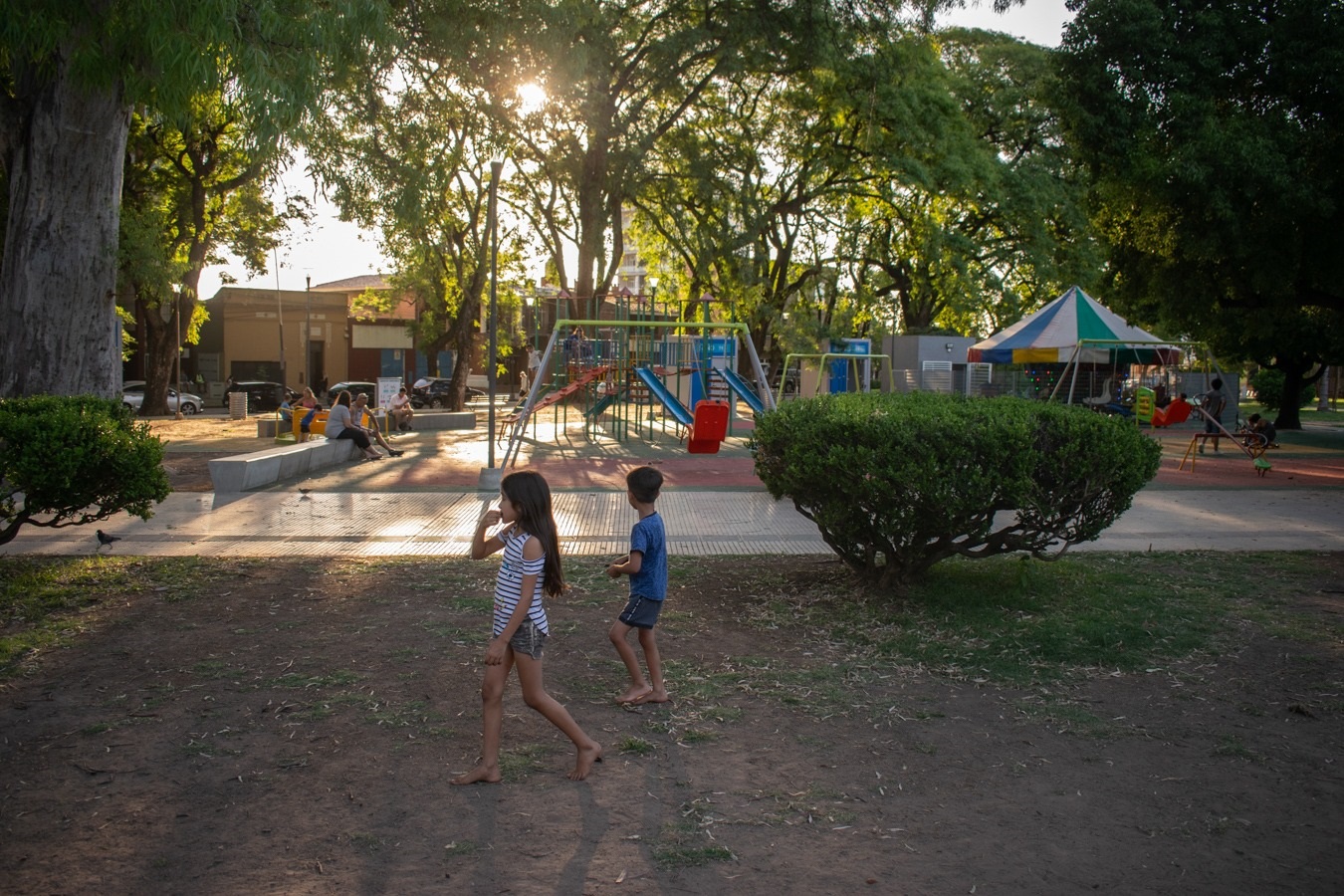 Las plazas de la ciudad son pulmones que dan un respiro al vértigo de la dinámica urbana. En ellas se perciben otras cosas. Transitar estos espacios a diario es un hábito que decenas de miles de personas hacen. Sin embargo son muchos menos quienes suelen llegarse hasta ellas para jugar, observar, o simplemente descansar. Se sabe, una cosa es transitar un lugar. Muy otra es habitarlo. Es decir apropiárselo, vivirlo, sentirlo. Eso lo conocen muy bien quienes transitan la infancia, ese territorio mágico en el que -si se consigue despegarse de pantallas y dispositivos móviles- se puede aprender a montar una bicicleta y guiarla con destreza. O hacer cabriolas en los juegos o sobre el césped, mientras la mirada adulta, que acompaña y contiene hace una concesión a la nostalgia pensando en su propia infancia.