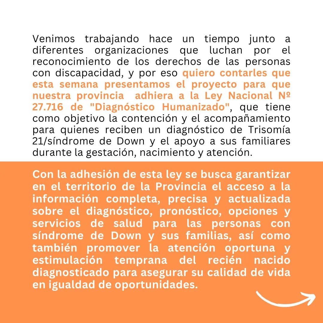 En el marco de la semana por el Día Mundial de la Persona con Síndrome de Down que se conmemora el 21 de marzo, la legisladora de Gualeguaychú, Lorena Arrozogaray, impulsa un proyecto para que la provincia adhiera a la Ley Nacional Nº 27.716 de “Diagnóstico Humanizado”.
