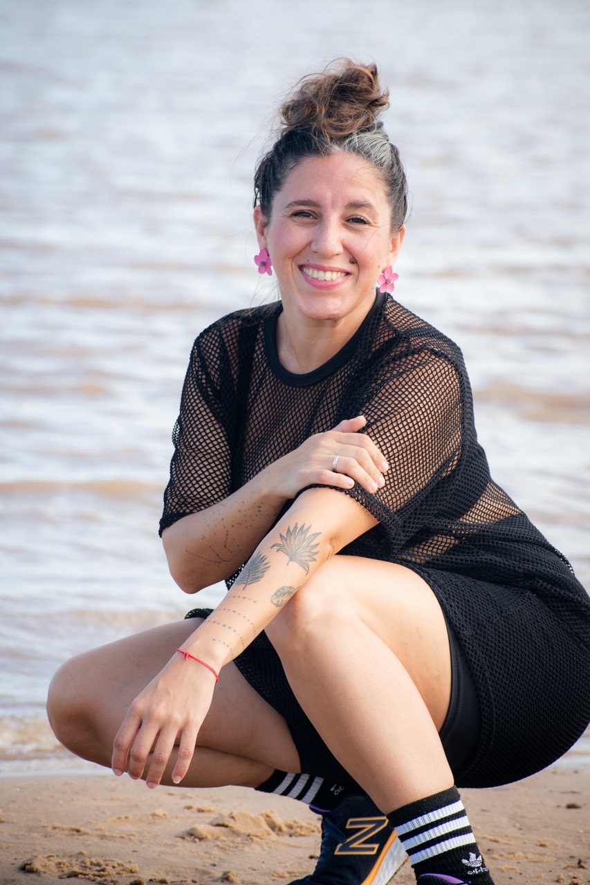 — Apenas terminé la escuela, me fui a vivir a Buenos Aires, a estudiar la carrera de actriz en el IUNA, que ahora es UNA, Universidad Nacional de Artes. Y seguí allí por catorce años, a la par desarrollé mi ser actriz, mi ser cantante, compositora y rapera porque me desempeñaba directamente en el rap, la rima y la improvisación rapeada. Y ahí lo que me pasó fue muy lindo porque conocí la autogestión. A los 19 años, empecé a trabajar en unos teatros como acomodadora, luego de boletera, y después ya quedé como encargada del equipo completo de los teatros donde trabajaba. Fue una hermosa experiencia con un productor de Bahía Blanca, Daniel Randazzo, de quien siempre digo que me apadrinó. Siempre remarco que la carrera de teatro tiene sus herramientas, como las tienen las carreras de músico, de artista, de rapera, pero la autogestión y la producción se aprende con experiencia. Y esos años en los teatros me enseñaron la parte de producción, contable y la autogestión, tan necesarias para desarrollar mis actividades artísticas y generar un salario.