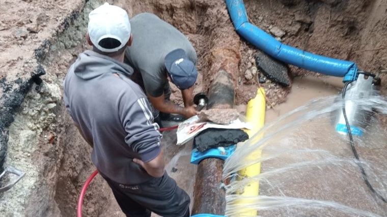 Cabe destacar que este domingo se trabajó en ese sector desde las primeras horas de la mañana y hasta pasadas las 16. Finalizadas las tareas y tras habilitarse nuevamente la distribución del suministro se detectó la aparición de una nueva fisura en un tramo contiguo del sector, por lo que esta mañana se retomó la intervención en el lugar.
