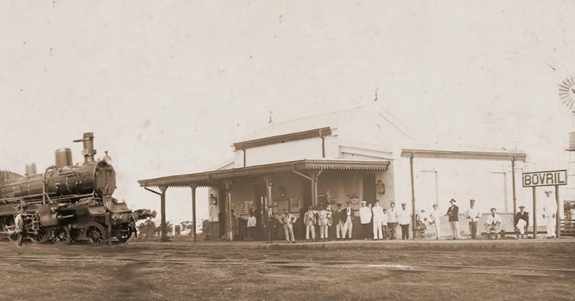 En 1911 llega el ferrocarril en 1913 se habilita el ramal que se iniciaba en Hasenkamp y llegaba al Km 49. La sociedad Argentina Bovril que poseía una importante estancia en la zona, solicita la aprobación del trazado y subdivisión de los campos perteneciente al Saladero Santa Elena de la Compañía, con el objeto de fundar la colonia y pueblo de Bovril. Los planos fueron realizados por el Ingeniero Menegazzo y Agr. Yost. Los mismos fueron aprobados y aceptada la donación de 98 hectáreas, el 26 de marzo de 1913. Fue en ese año que se construye un galpón, depósito, torre, tanque y edificio de la estación para pasajeros.