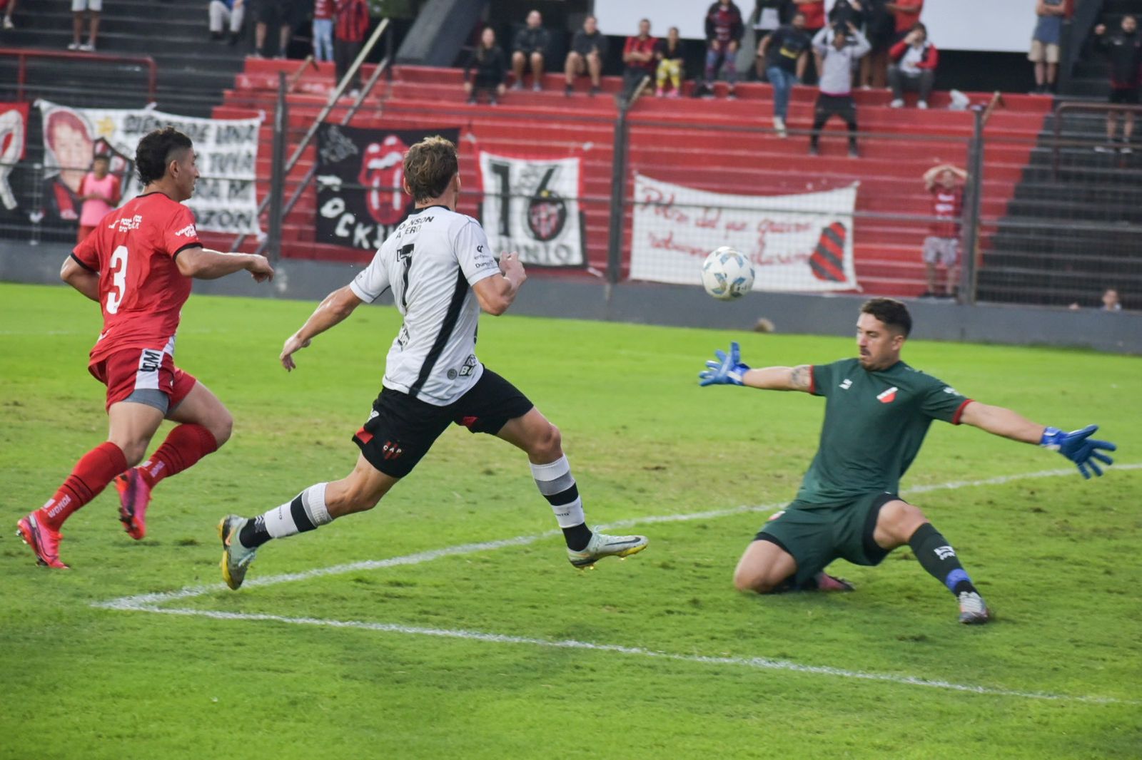 La primera tapó el arquero Julio Salvá, quien resolvió con firmeza. Seguidamente, luego del córner, el centro fue capturadoy finalmente quedó estampado en el travesaño su remate. Para la tercera en la ráfaga de ataques contra la portería de calle Ayacucho, también apareció la figura del arquero rojinegro.
