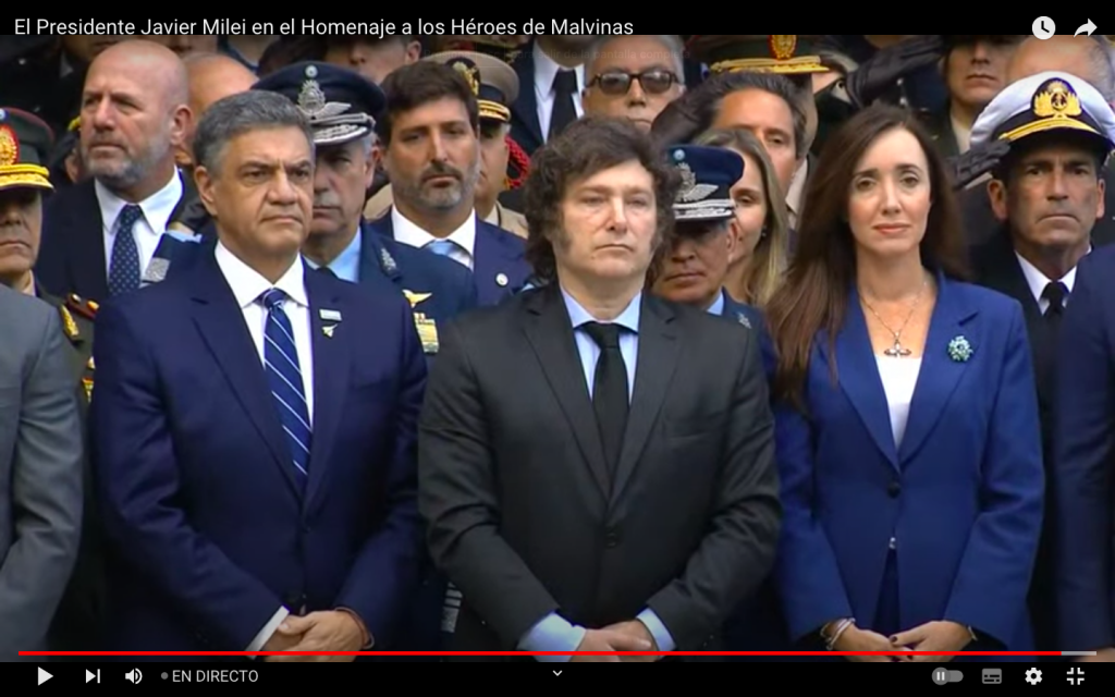 El mandatario y la vicepresidente Victoria Villarruel participan del acto oficial a 42 años del inicio de la guerra El Presidente encabeza un acto en la Plaza San Martín en el que entregó una ofrenda floral a los 649 héroes del conflicto bélico del Atlántico Sur. Junto a Javier Milei se encuentra la vicepresidente Victoria … Sigue leyendo Malvinas: Milei encabeza el acto conmemorativo