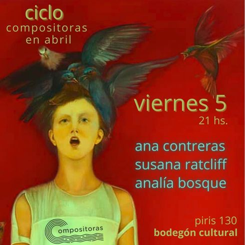 Hoy viernes desde las 21, una nueva edición del Ciclo Compositoras: Ana Contreras – Susana Ratcliff – Analía Bosque. En el Bodegón Cultural (Piris 130). Entrada $4000. Reservas al 3755648406.