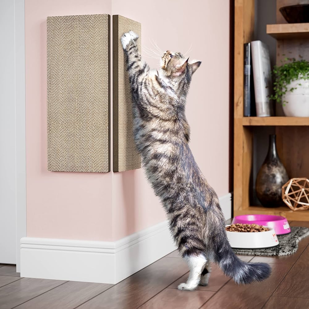 Otros elementos de entretenimiento son los árboles para gatos, que son estantes montados en la pared, que proporcionan perchas resistentes y alfombradas. Los espacios verticales no solo ofrecen oportunidades de ejercicio, sino que también permiten a los felinos observar su territorio, proporcionando estimulación mental y una sensación de seguridad. Asimismo, se recomienda colocar un espacio cómodo cerca de una ventana para crear un asiento de primera fila al mundo exterior ya que a los felinos les fascina observar los pájaros, la fauna y qué pasa en el exterior.
