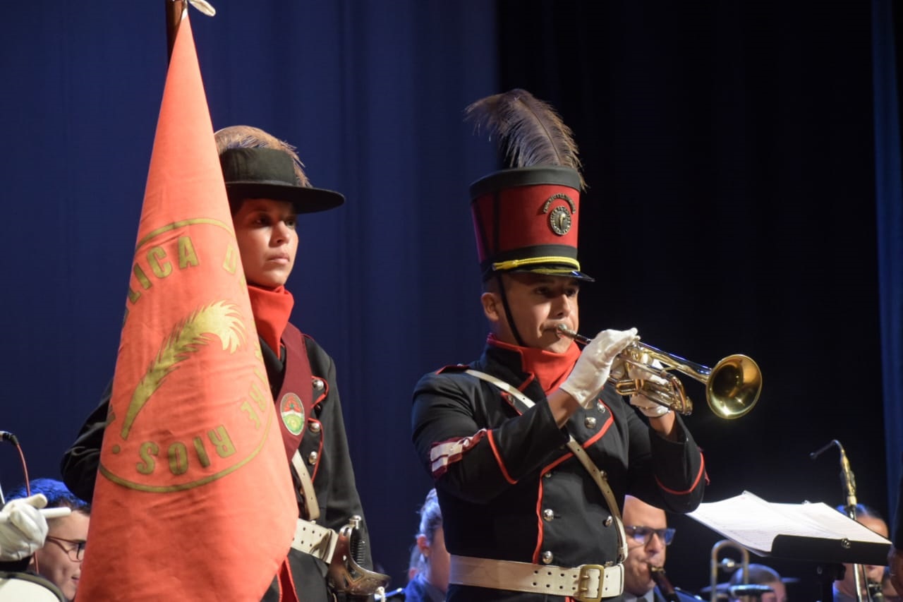 Tributar reconocimiento a quienes han entregado su vida o se han arriesgado por una noble y justa causa no sólo es necesario, sino que se impone. Para quienes aman La Argentina, y se reconocen como habitantes de esta parte del mundo, la recuperación del archipiélago usurpado en 1833 por Gran Bretaña está a la par de honrar la memoria de los 649 combatientes que fallecieron por defender la presencia nacional en esos australes territorios. Y reconocer a quienes quedaron heridos, mutilados y con secuelas síquicas y físicas. Con ese propósito es que la Banda de Policía de Entre Ríos tuvo un rol central en la “Gala Malvinas no olvidar”, organizada por el Centro de Veteranos de Guerra de Paraná, que se desarrolló en el Teatro 3 de Febrero.