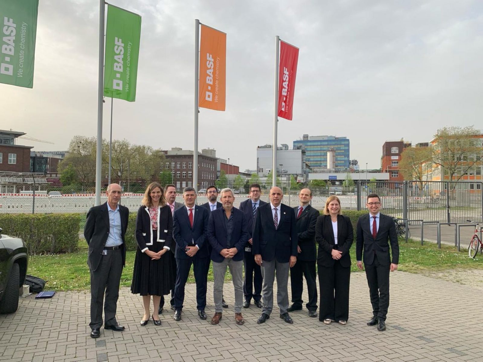 En ese marco, la comitiva oficial que integra Frigerio recorrió las instalaciones de la firma líder en la innovación de los procesos productivos y cuidado del ambiente. La fábrica se fijó como objetivo generar cero emisiones netas de gases de efecto invernadero para 2050. Fueron recibidos por el director de Política Comercial e Industrial, Redes Internacionales de la Sociedad Europea BASF SE, Jan Von Herff.