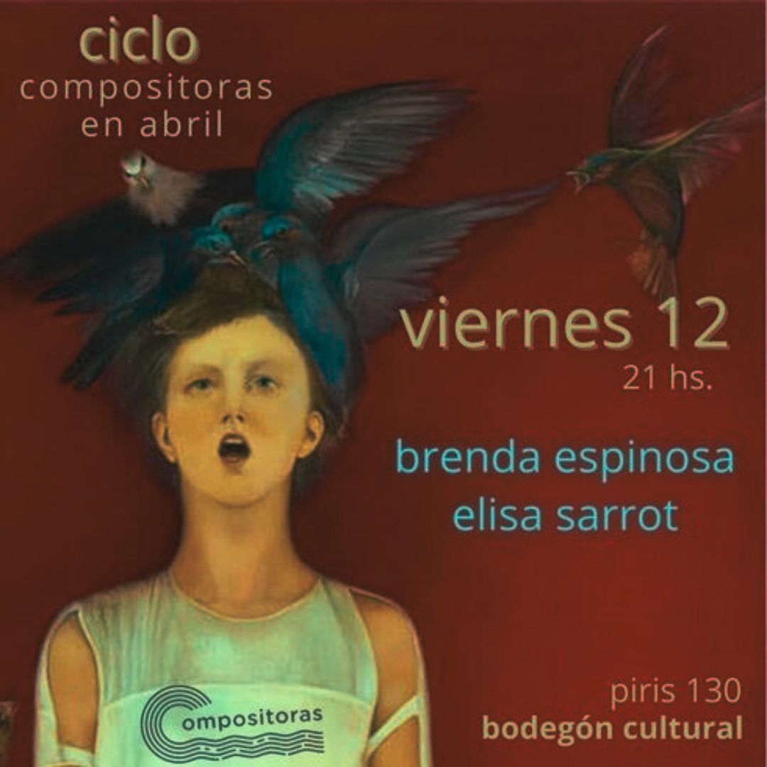 El próximo viernes 12 a las 21, una nueva jornada del Ciclo Compositoras. Se presentarán Brenda Espinosa y Elisa Sarrot. Será en el Bodegón Cultural (Piris 130). Entrada $4000. Reservas al 3755648406.