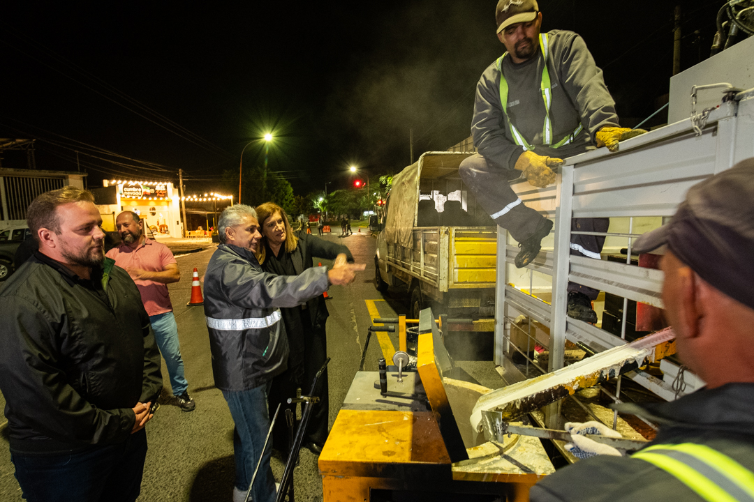 Este jueves de noche, personal de la Secretaría de Servicios Públicos concretó tareas de demarcación horizontal de sendas peatonales, el pintado de cordones en amarillo para designar espacios donde se prohíbe estacionar, arreglo de nomencladores, pintado de paradas de ómnibus y líneas de contención vehicular.