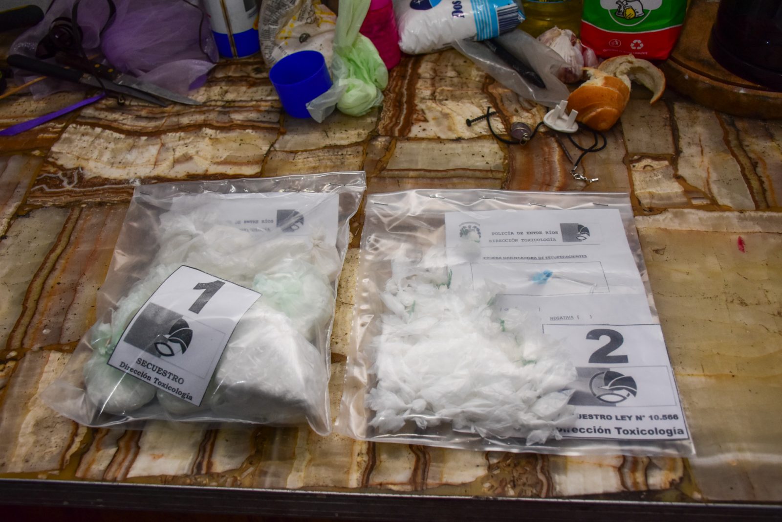Los allanamientos fueron realizados en los barrios Mosconi, Alloatti, Vicoer, Humito y Bajada Grande, con más de 160 efectivos. Se secuestraron armas de fuego, municiones, cocaína, teléfonos y dos motovehículos.