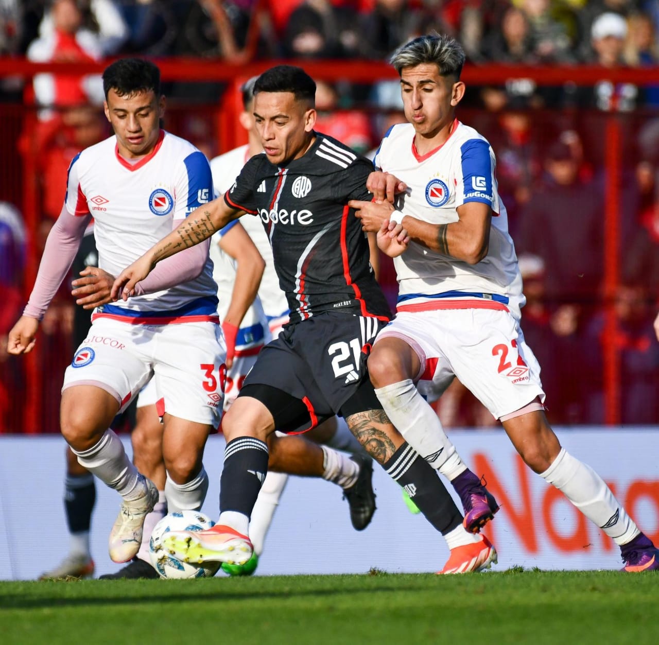 En el inicio lo intentó Miguel Borja en la primera que tocó, pero su derechazo con la cara abierta se fue besando el palo izquierdo de Diego Rodríguez. Argentinos Juniors no se quedó atrás, presionó para recuperar rápido la pelota y provocó serios desajustes en su rival. Tuvo dos situaciones a través de Luciano Gondou, luego de varias desatenciones de River a la espalda de Rodrigo Villagra, que no resolvió de la mejor manera.