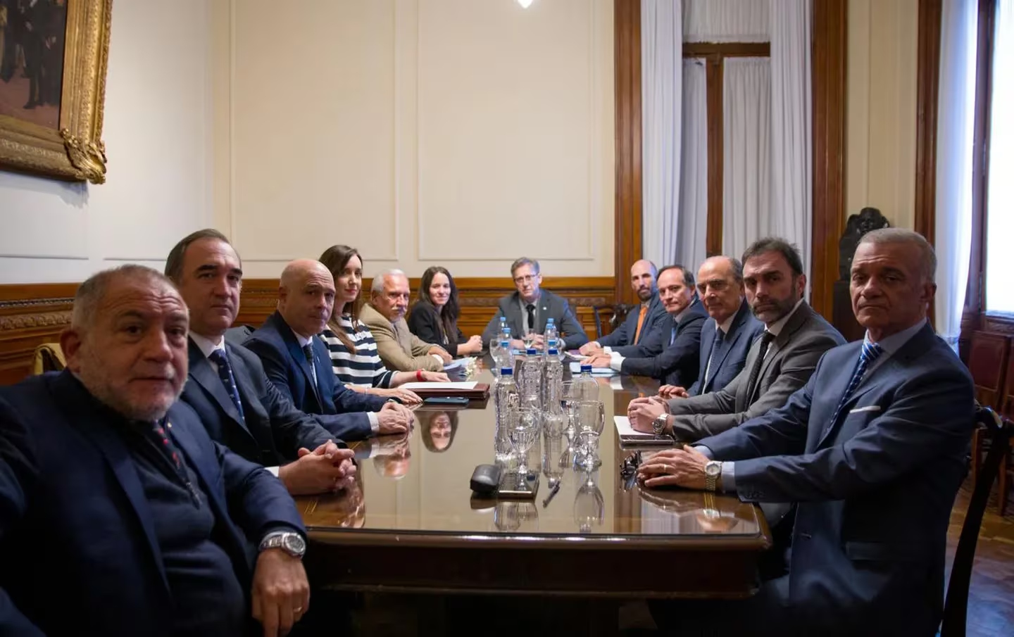 Victoria Villarruel y Francos se reunieron en el Salón Gris de la presidencia con los senadores Bartolomé Abdala, Ezequiel Atauche (LLA), el salteño Juan Carlos Romero, Carlos Arce (Frente Renovador), Carlos Espínola (Unidad Federal), Luis Juez (PRO), y Eduardo Vischi (UCR); y el secretario parlamentario Agustín Giustiniani. También se sumaron el vicejefe de Gabinete, José Rolandi y la secretaria de Planeamiento Estratégico María Ibarzabal.
