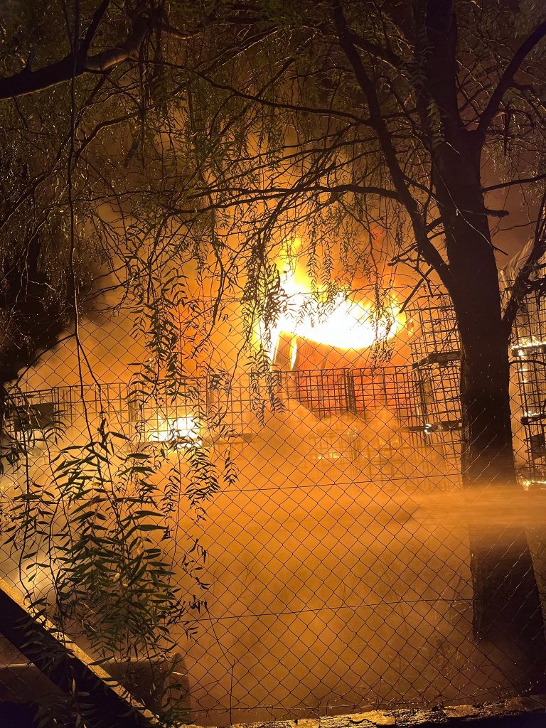 El fuego, por ahora de causas desconocidas, consumió un galpón donde se producía espuma para colchones. Actuaron los Bomberos y esta mañana se iniciaban las pericias.