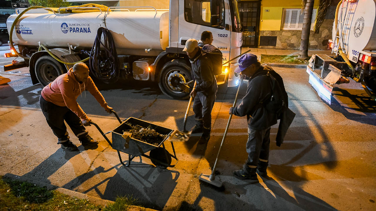 En Paraná, el Municipio realizó un nuevo operativo nocturno de limpieza