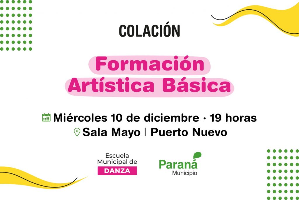 La Municipalidad de Paraná realizará la Colación de la Escuela Municipal de Danza este miércoles 10 de diciembre, a las 19 horas, en la Sala Mayo.