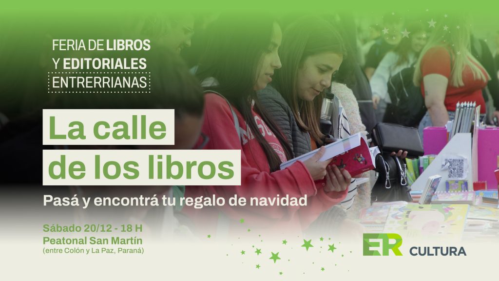 La feria La calle de los libros, se llevará a cabo este sábado 20, desde las 18, en calle San Martín, entre Colón y La Paz, de Paraná. Participarán sellos independientes y librerías que ofrecerán un catálogo diverso de libros nuevos y usados para todas las edades. Es organizado por la Secretaría de Cultura de Entre Ríos.