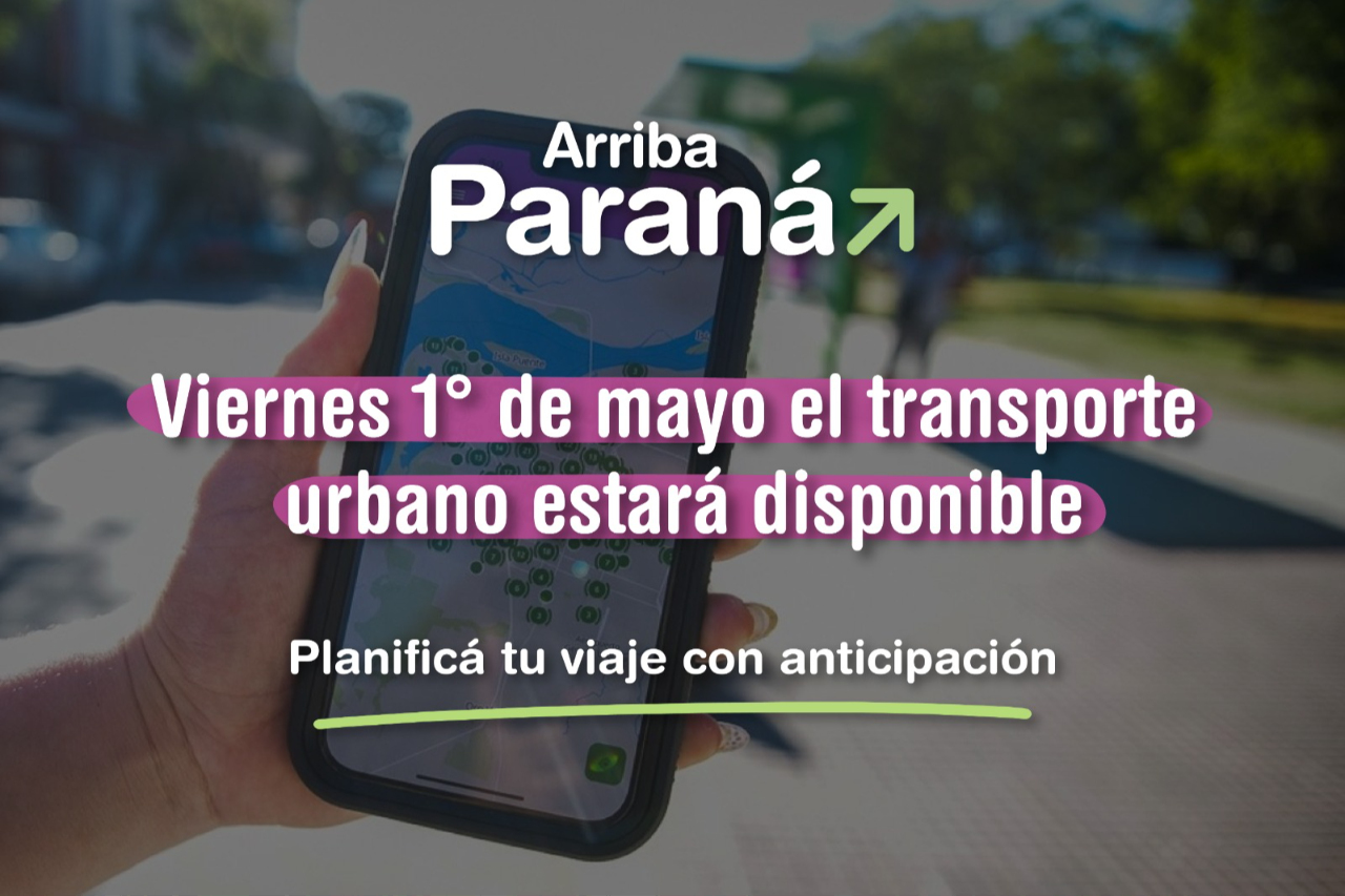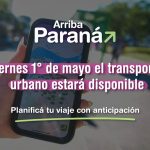 La Municipalidad de Paraná informa que, con motivo del Día del Trabajador, el servicio de transporte urbano de pasajeros brindado por la empresa San José funcionará con cronograma correspondientes a los días domingo, garantizando así la prestación del servicio en toda la ciudad.