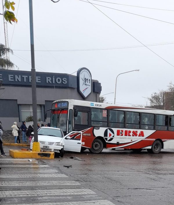Un colectivo y un automóvil chocaron en las 5 Esquinas de Paraná. Chocaron un auto y un colectivo en Cinco Esquinas de Paraná....